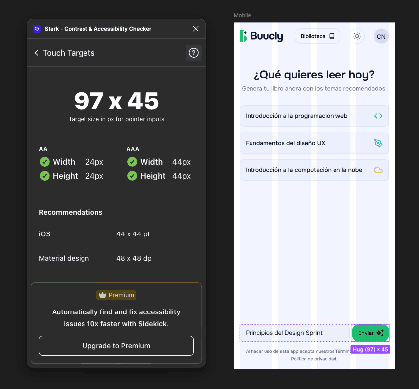 Se prioriza un diseño simple para las interfaces principales en formato móvil, con planes de adaptarlas a una vista de escritorio. Estas interfaces se distinguen por adherirse a las normas WCAG 2, asegurando un buen contraste de color y el tamaño adecuado de las zonas clicables.