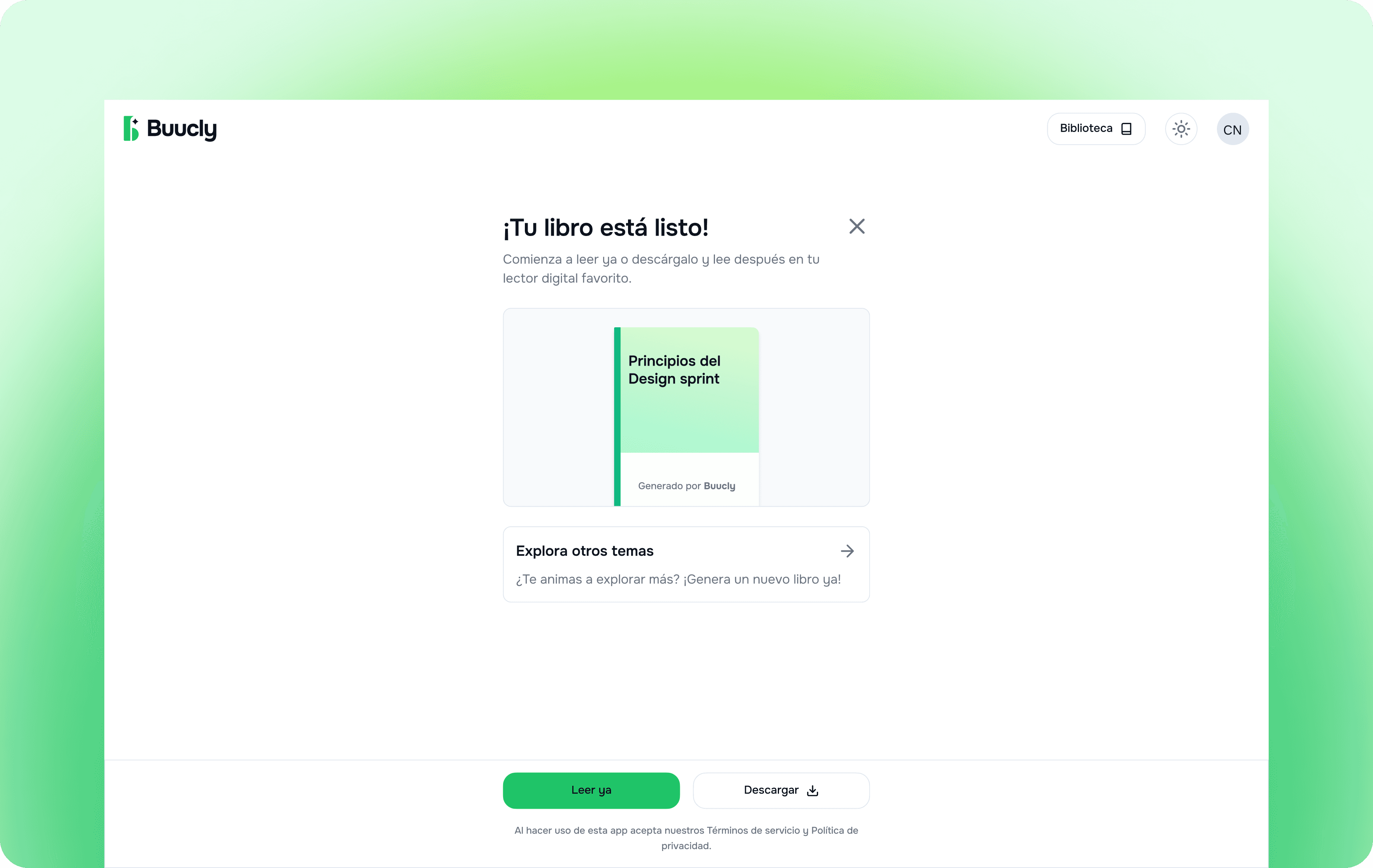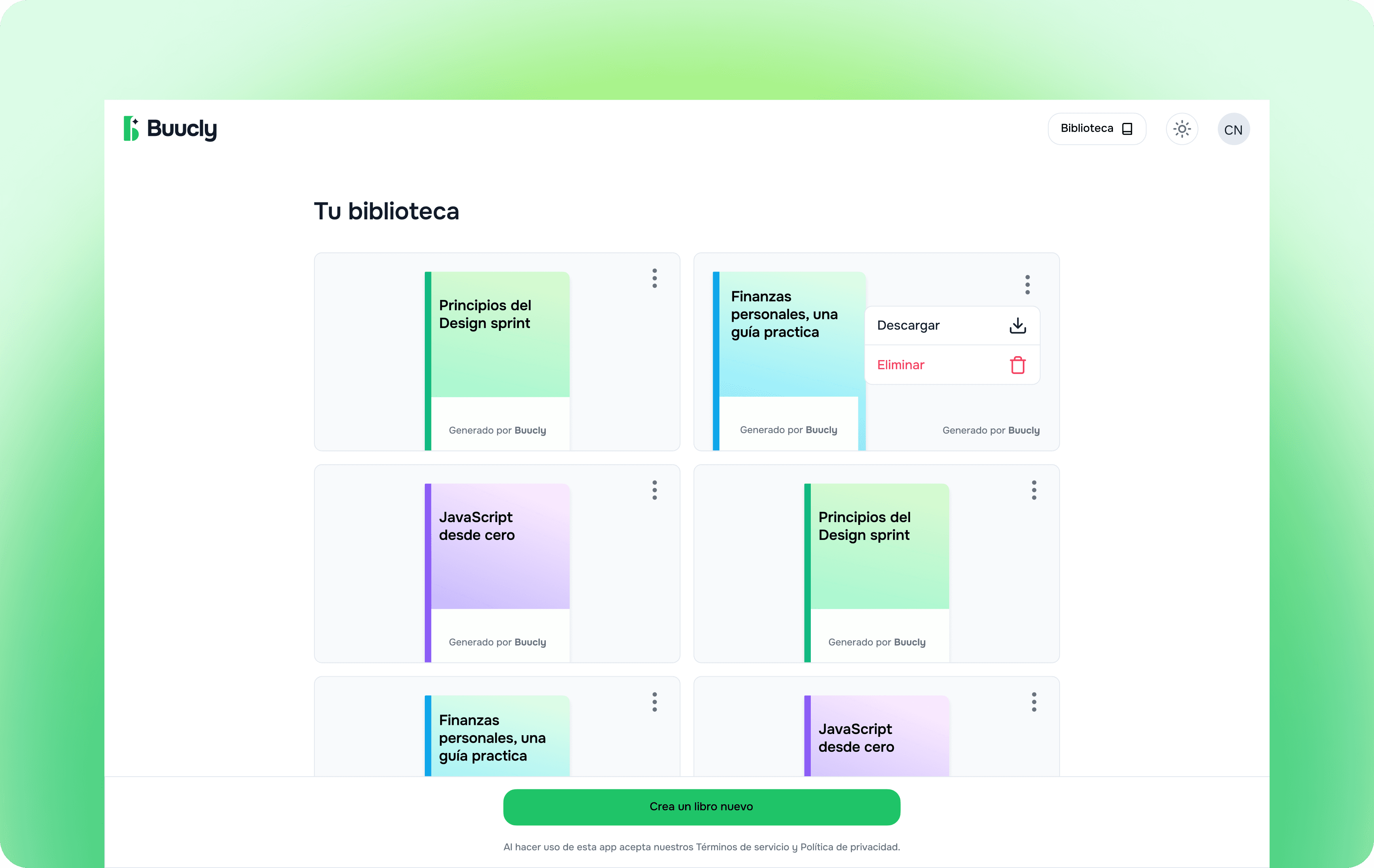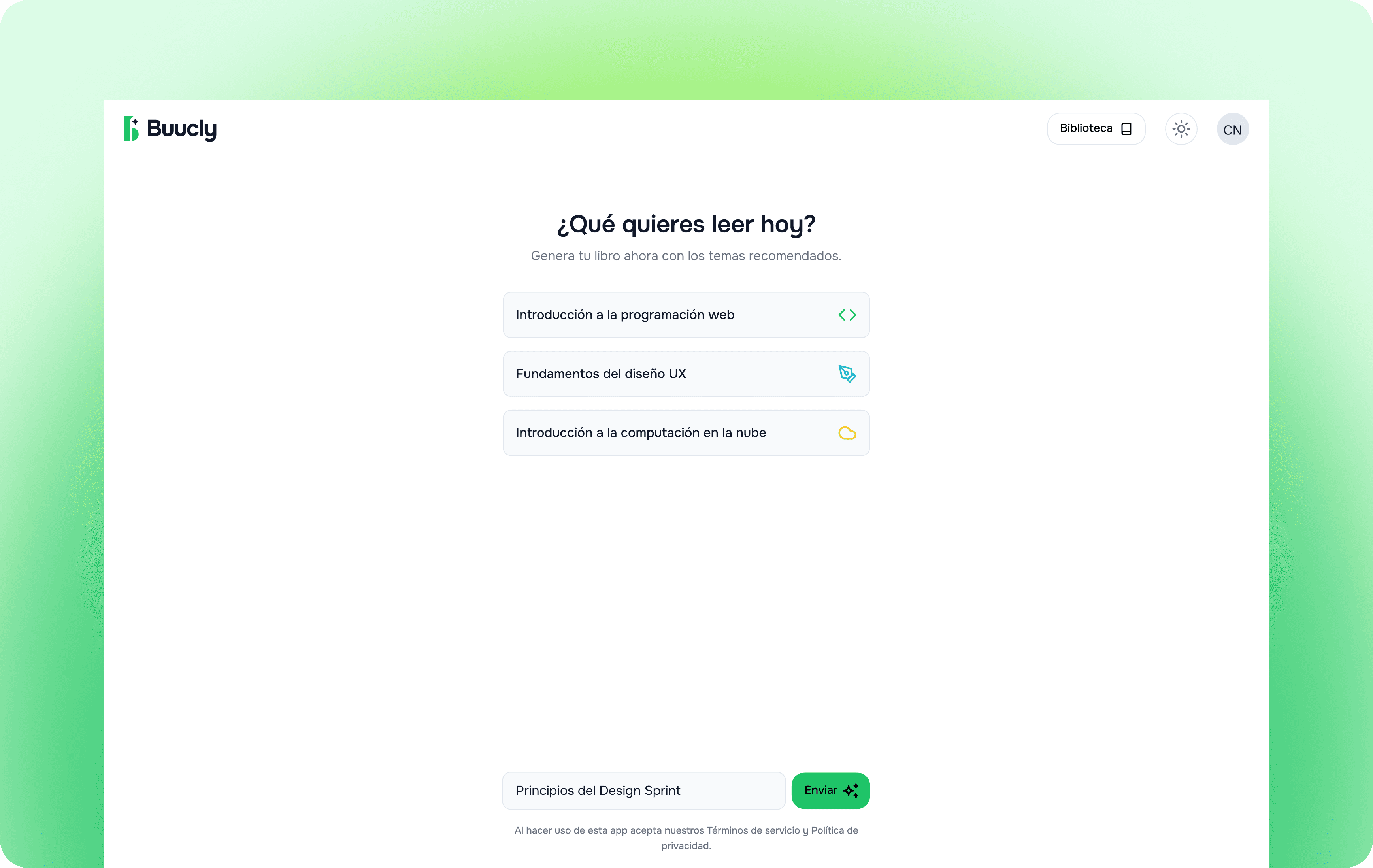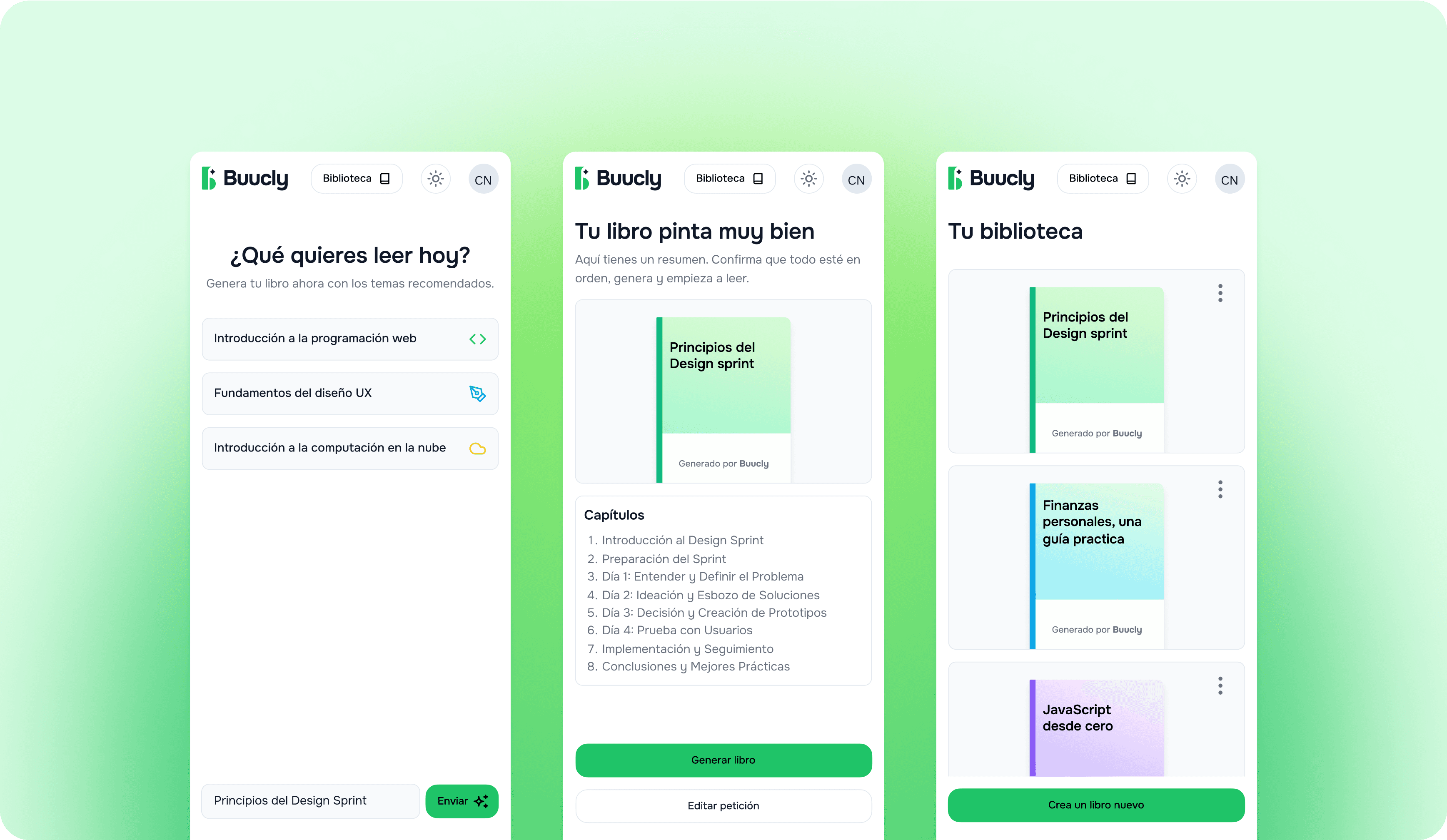 Buucly nace de la necesidad de ofrecer una solución rápida y personalizada para quienes buscan libros sobre temas específicos que no están fácilmente disponibles en el mercado. En un mundo donde la información es vasta pero no siempre está bien estructurada o accesible, Buucly ofrece a sus usuarios la posibilidad de crear libros personalizados utilizando inteligencia artificial.